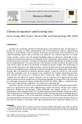 (Effet d'une exposition au styrène seul ou combinée au bruit sur la fonction auditive : revue de la littérature). Extrait de : HENDERSON D. ; PRASHER D. ; KOPKE R. ; SALVI R. ; et coll. Noise induced hearing loss : basic mechanisms, prevention and control.