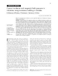 Cancer incidence and magnetic field exposure in industries using resistance welding in Sweden.