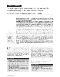Occupational exposure to noise and the attributable burden of hearing difficulties in Great Britain.