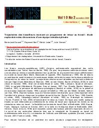 Les troubles musculo-squelettiques associés au travail sont extrêmement courants. Habituellement, ce problème de santé est de courte durée. Cependant, dans un petit nombre de cas, il génère des coûts sociaux importants et affecte la productivité des entreprises. Les données actuelles démontrent que les causes de l'incapacité ne sont pas uniquement reliées aux caractéristiques de l'individu blessé, mais proviennent aussi de l'environnement du travailleur : le milieu de travail, le système de compensation et même le système de prise en charge médical. Une revue des études portant sur les interventions qui ont eu un effet positif sur le retour au travail confirme d'une part, l'utilisation du milieu de travail naturel comme contexte de ré-entraînement et d'autre part, renforce la nécessité de l'implication des différents partenaires dans le processus. Cet article décrit la structure d'un programme d'intervention basée sur les plus récentes connaissances scientifiques. L'implantation de ceprogramme demande des changements profonds dans les rôles des partenaires impliqués mais apparaît prometteuse à long terme pour éviter l'incapacité prolongée chez les travailleurs. Cet article est disponible en version PDF sur le site www.pistes.uqam.ca.