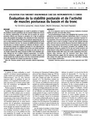 Plusieurs études épidémiologiques ont montré la prévalence et l'ampleur des problèmes musculosquelettiques chez les musiciens professionnels et en formation. Malgré tout, très peu de recherches expérimentales ont été faites afin de proposer des mesures préventives pour diminuer la prévalence de ce type de problèmes parmi cette population de travailleurs. 3 violonistes ont été évalués afin de vérifier l'efficacité d'un tabouret ergonomique (par rapport à un banc standard) à diminuer l'activité électromyographique de muscles posturaux du bassin et du tronc. Des mesures de stabilité posturale ont également été prises. Les résultats montrent que l'utilisation du tabouret a mené à une diminution marquée des oscillations posturales et à une atténuation des puissances spectrales de ces oscillations selon les 2 axes (antéro-postérieur et médio-latéral). Ces résultats suggèrent que l'utilisation du tabouret exigerait une activité moindre des muscles du bassin et du tronc et pourrait donc permettre de retarder l'apparition de la fatigue musculaire de ces régions du corps.