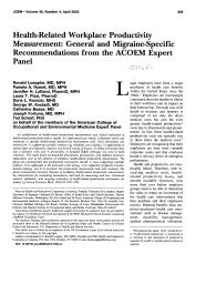 Health-related workplace productivity measurement : general and migraine-specific recommendations from the ACOEM expert panel.