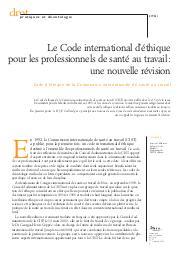 Le Code international d'éthique pour les professionnels de santé au travail : une nouvelle révision.