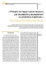 Ce symposium, organisé pendant le 28e Congrès national de Médecine et santé au travail par l'INRS, en partenariat avec la CNAMTS et la CRAM Aquitaine, avait pour objectif d'échanger sur l'évaluation et la prévention du risque routier encouru par les salariés. Ces actes devraient contribuer à alimenter la réflexion sur le sujet.