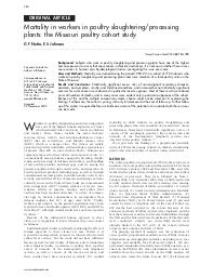 Mortality in workers in poultry slaughtering / processing plants : the Missouri poultry cohort study.