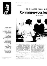 Le laser utilisé sur des tissus humains vaporise les cellules touchées et produit des fumées dites chirurgicales. Le personnel manipulant un laser, notamment dans les secteurs d'activités tels que la chirurgie plastique, la dermatologie ou l'ophtalmologie, s'expose donc régulièrement, depuis souvent plusieurs années, à ce panache de fumée. Mais combien d'entre eux connaissent les risques à la santé liés à ce type d'exposition? L'article définit d'abord les deux grandes catégories de risques existants, le risque biologique et le risque chimique, avant de présenter une étude exploratoire tentant d'identifier les toxiques chimiques qu'il serait possible d'échantillonner lors de traitements au laser. D'autres risques à la santé, comme les odeurs désagréables et la réduction de la visibilité lors des interventions sont évoqués. L'article décrit enfin les moyens de protection disponibles (ventilation à la source, ventilation ambiante et masques chirurgicaux).