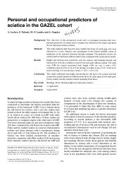 Personal and occupational predictors of sciatica in the GAZEL cohort.