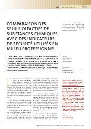 Comparaison des seuils olfactifs de substances chimiques avec des indicateurs de sécurité utilisés en milieu professionnel.
