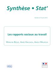 Ce numéro de la collection Synthèse.Stat présente les résultats de l’enquête Conditions de travail - Risques psychosociaux de 2016 concernant les différents aspects des rapports sociaux au travail. Il aborde les formes de coopération au sein du collectif de travail, les différentes formes de désaccords et de violence au travail, des situations de tensions aux agressions. Enfin, même si l’enquête Conditions de travail - Risques psychosociaux 2016 est assez succincte sur ces sujets, une dernière partie porte sur l’autonomie collective et la participation. Ce numéro recouvre un des six axes d’analyse des risques psychosociaux construits par le collège d’expertise sur le suivi statistique des risques psychosociaux au travail : les rapports sociaux au travail (axe 4). Cinq autres numéros sont publiés pour rendre compte des résultats de l’enquête Conditions de travail-Risques psychosociaux : contraintes physiques, et intensité du travail (enregistré dans INRS-Biblio sous le numéro 522817) ; organisation du temps de travail (n° INRS-Biblio 522786) ; autonomie dans le travail (n° INRS-Biblio 518935) ; conflits de valeurs et exigences émotionnelles (n° INRS-Biblio 522787) ; reconnaissance, insécurité et changements dans le travail (n° INRS-Biblio 522817).