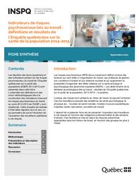 Indicateurs de risques psychosociaux liés au travail : définitions et résultats de l’Enquête québécoise sur la santé de la population 2014-2015.