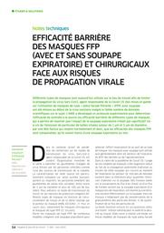 Efficacité barrière des masques FFP (avec et sans soupape expiratoire) et chirurgicaux face aux risques de propagation virale.