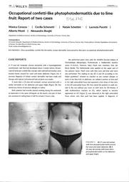 (Phytophotodermatite d'origine professionnelle de type confetti due au citron vert : présentation de deux cas).