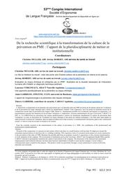 De la recherche scientifique à la transformation de la culture de la prévention en PME : l’apport de la pluridisciplinarité de métier et institutionnelle.