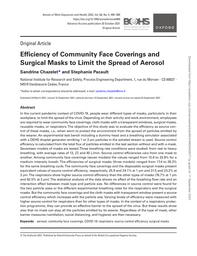 Efficiency of community face coverings and surgical masks to limit the spread of aerosol.