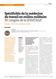 Le 36e congrès de la Société d’hygiène et de médecine du travail dans les armées et industries d’armement (SHMTAIA) s’est déroulé les 12 et 13 octobre à Saint-Malo. Ce compte rendu résume les interventions portant sur l’activité physique, la santé mentale et d’autres thèmes comme la surveillance biologique des expositions professionnelles (SBEP), la loi Jardé, les TMS chez des mécaniciens de l’aéronautique.
