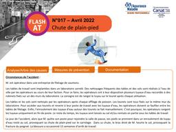 Ce flash AT aborde le cas d'un opérateur qui a chuté de plain-pied en se prenant les pieds dans un enroulement de tuyau d'eau. Dans sa chute, la victime s'est fracturée le poignet, ce qui a occasionné quinze semaines d'arrêt de travail. Pour éviter le renouvellement de ce genre d'accident et proposer une réflexion sur la dangerosité de la situation décrite, ce document contient un arbre des causes et indique des mesures de prévention à mettre en œuvre. Ces mesures concernent notamment la consigne de sécurité à adopter et l'identification d'une solution consistant à raccorder les tuyaux d'eau à des enrouleurs à retour automatique, suspendus en élévation au-dessus des postes de travail.