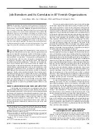 Cet article vise à étudier les facteurs associés à l’ennui au travail dans 87 lieux de travail finlandais (N = 11 468) et à examiner les associations entre l’ennui au travail, les effets sur la santé et les attitudes au travail. P...