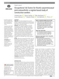 Occupational risk factors for thumb carpometacarpal joint osteoarthritis : a register-based study of construction workers.