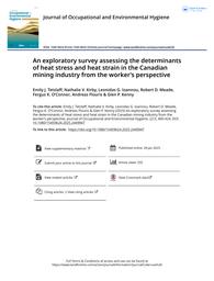 An exploratory survey assessing the determinants of heat stress and heat strain in the Canadian mining industry from the worker’s perspective.