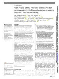 Work-related asthma symptoms and lung function among workers in the Norwegian salmon processing industry : a cross-sectional study.