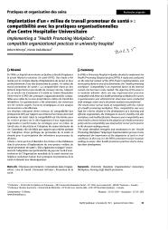 Implantation d’un « milieu de travail promoteur de santé » : compatibilité avec ...