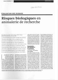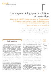 Les risques biologiques : évolution et prévention (Journées de l'ADHYS (Association pour le développement de l'hygiène et de la sécurité dans les établissements de recherche ou d'enseignement supérieur) Paris, 31 mars et 1er avril 2011).