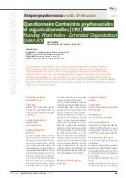 Le questionnaire « Nursing Work Index - Extended Organization » (NWI-EO) mesure les contraintes psychosociales et organisationnelles en milieu de soins (infirmiers et aides-soignants) et permet l'analyse de situations de travail vécues. Cette fiche appartient à une série (publiée régulièrement dans la revue Références en santé au travail) qui analyse les questionnaires utilisés dans les démarches de diagnostic et de prévention du stress et des risques psychosociaux au travail. L’article « Les questionnaires dans la démarche de prévention du stress au travail » (TC 134 publié en 2011par les mêmes auteurs) présente la série complète de questionnaires sur les risques psychosociaux et propose au préventeur une aide pour choisir l’outil d’évaluation le mieux adapté.